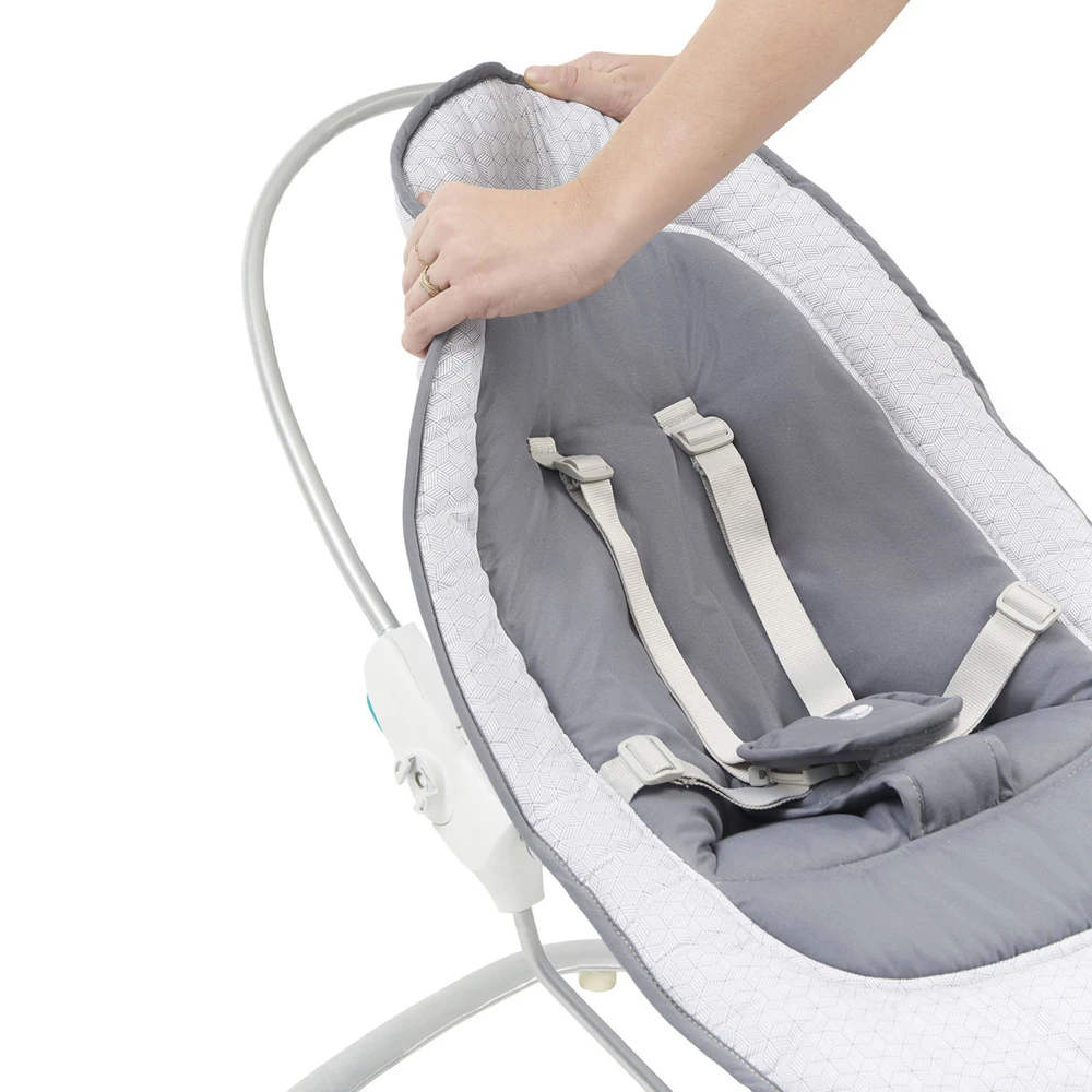 - Grâce à sa fonction détecteur de mouvement, la balancelle peut se déclencher automatiquement lorsque bébé commence à bouger : il reste ainsi calme et apaisé.