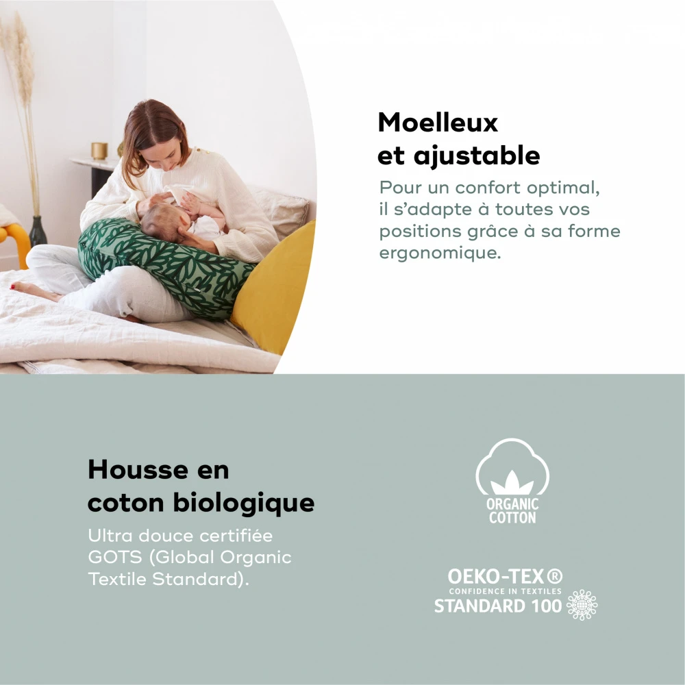 Caractéristiques du Coussin d’allaitement b.love vert végétal :