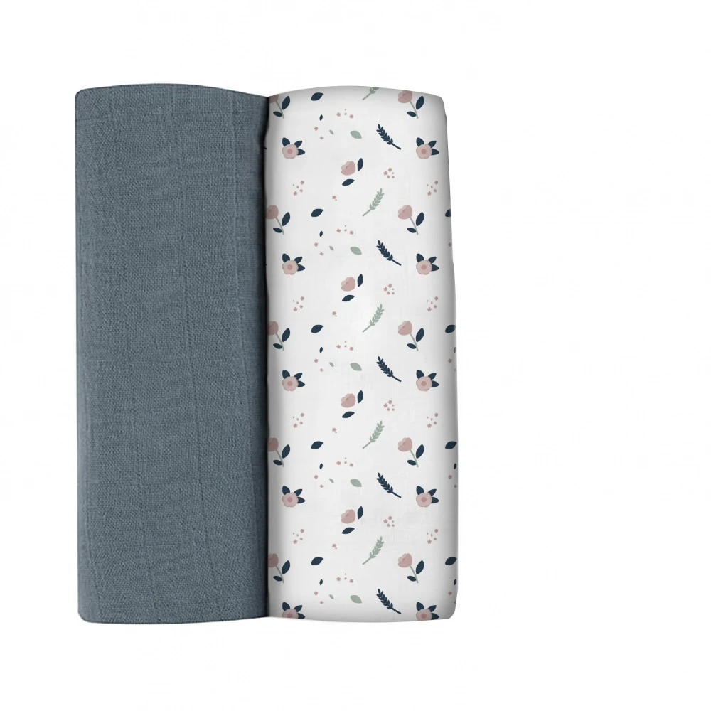 Lot de 2 langes 120cm gris stormy / flore printanière
