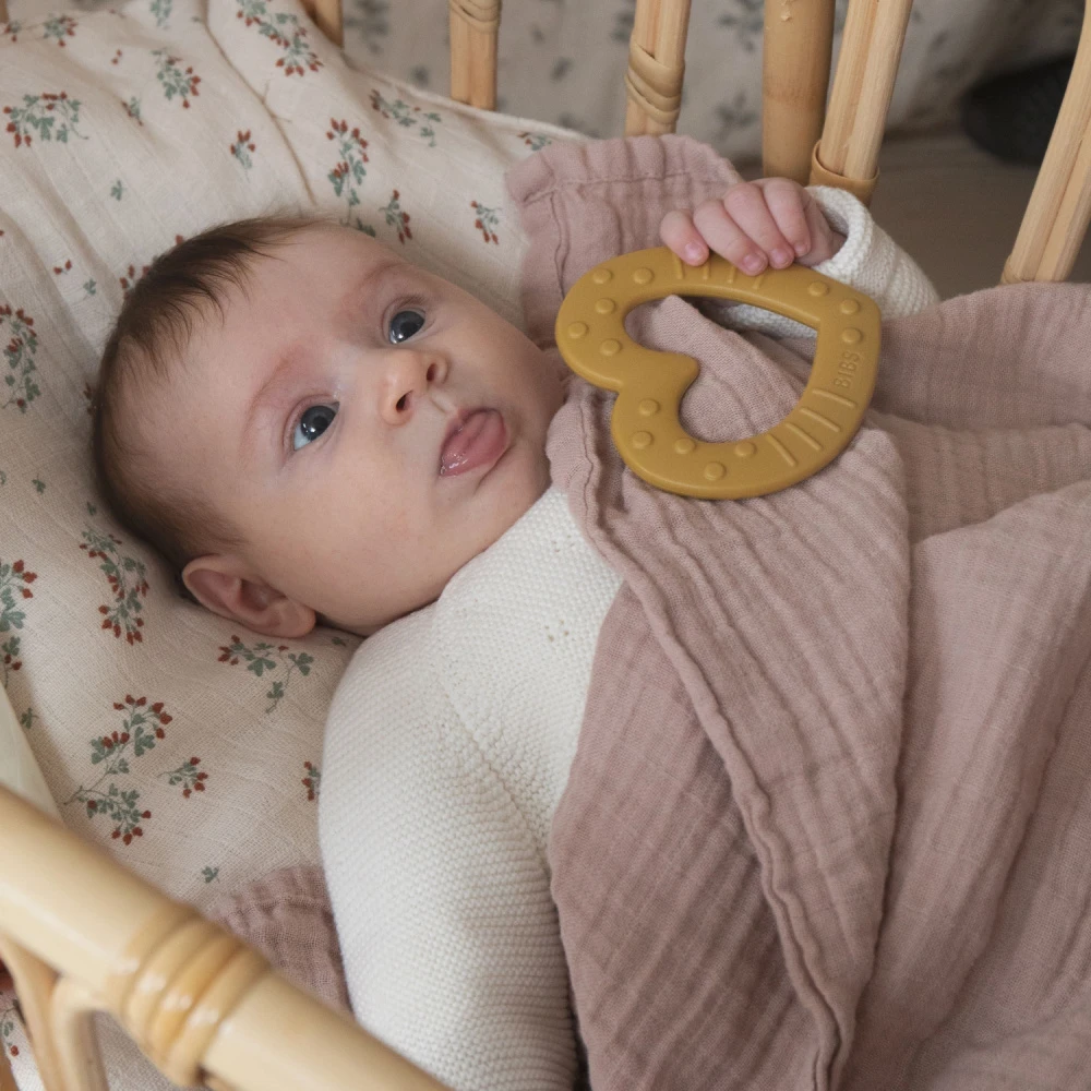 Optez pour cet Anneau de dentition coeur ivory de chez Bib’s. Utilisable dès la naissance. Cet anneau de dentition sera idéal pour soulager bébé lors des poussées dentaires. Facile à saisir par des petites mains.