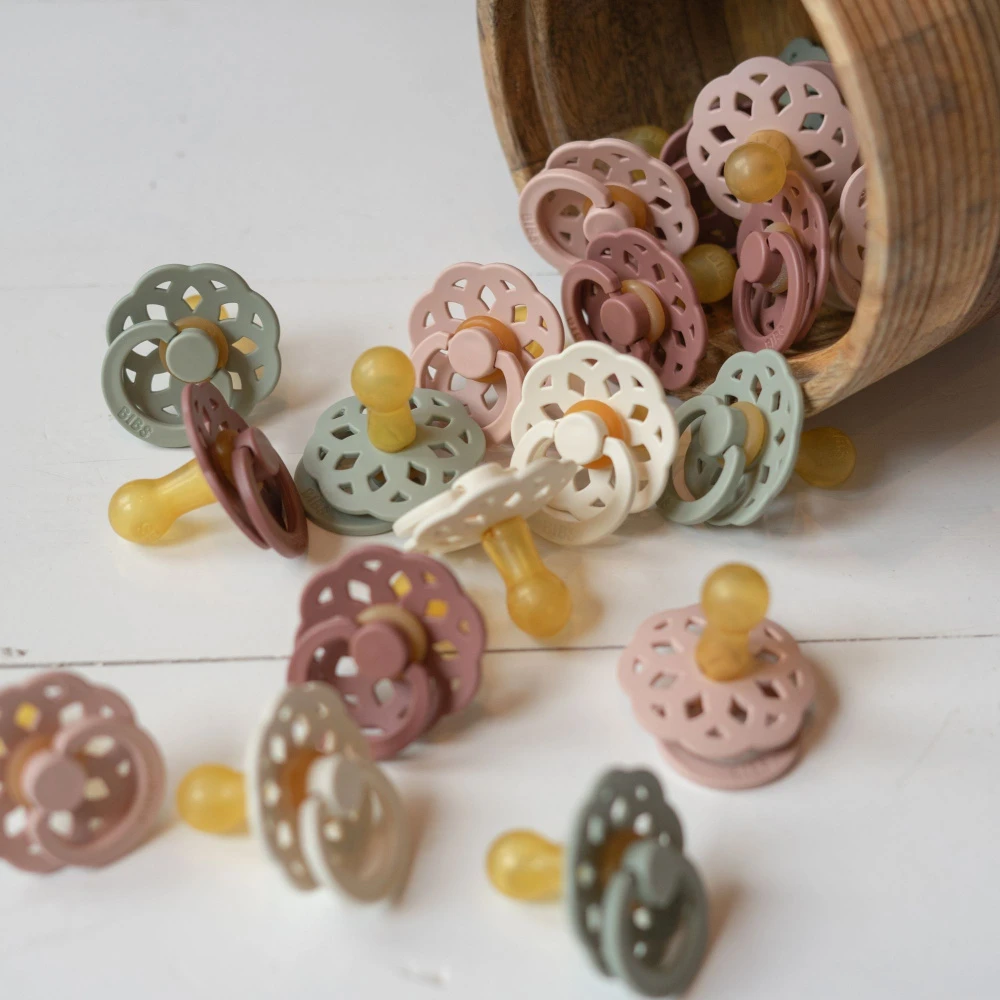 Pack de 2 sucettes bohème caoutchouc 6 mois+ fossil grey et mauve