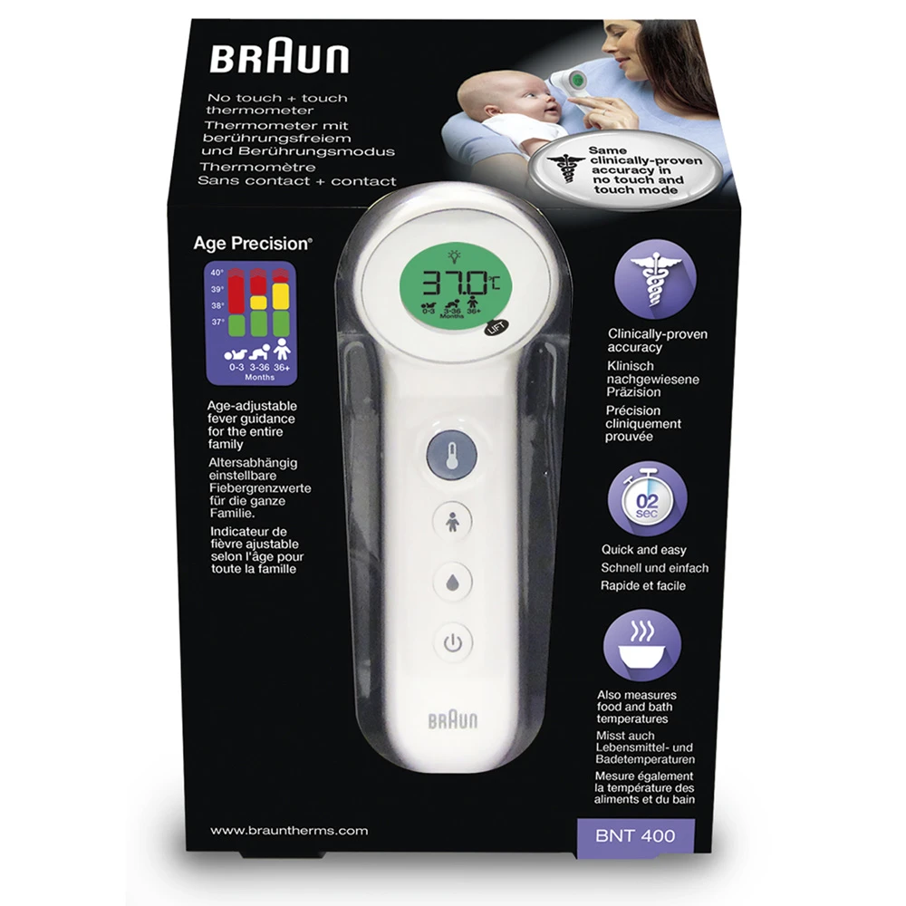 Optez pour le Thermomètre frontal sans contact + contact age precision de la marque Braun. Il deviendra votre accessoire indispensable pour prendre la température de votre enfant en toute facilité.