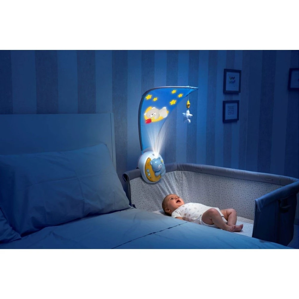 Amovible, placez le projecteur sur le côté du lit de bébé pour profiter d’une projection magique sur le plafond.