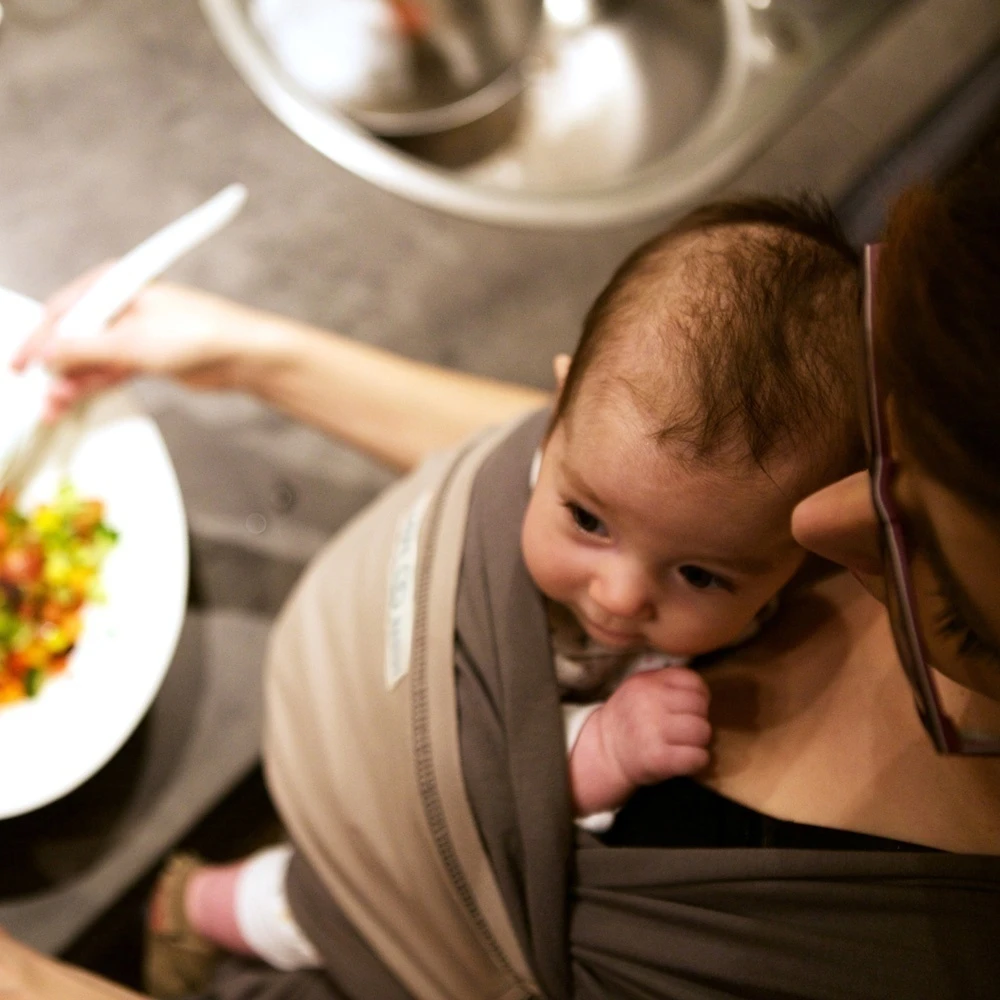 Vous pouvez ensuite sortir et remettre Bébé sans défaire votre nœud. Avec les nouveau-nés, c’est très appréciable car les couches par exemple, sont changées de nombreuses fois par jour.