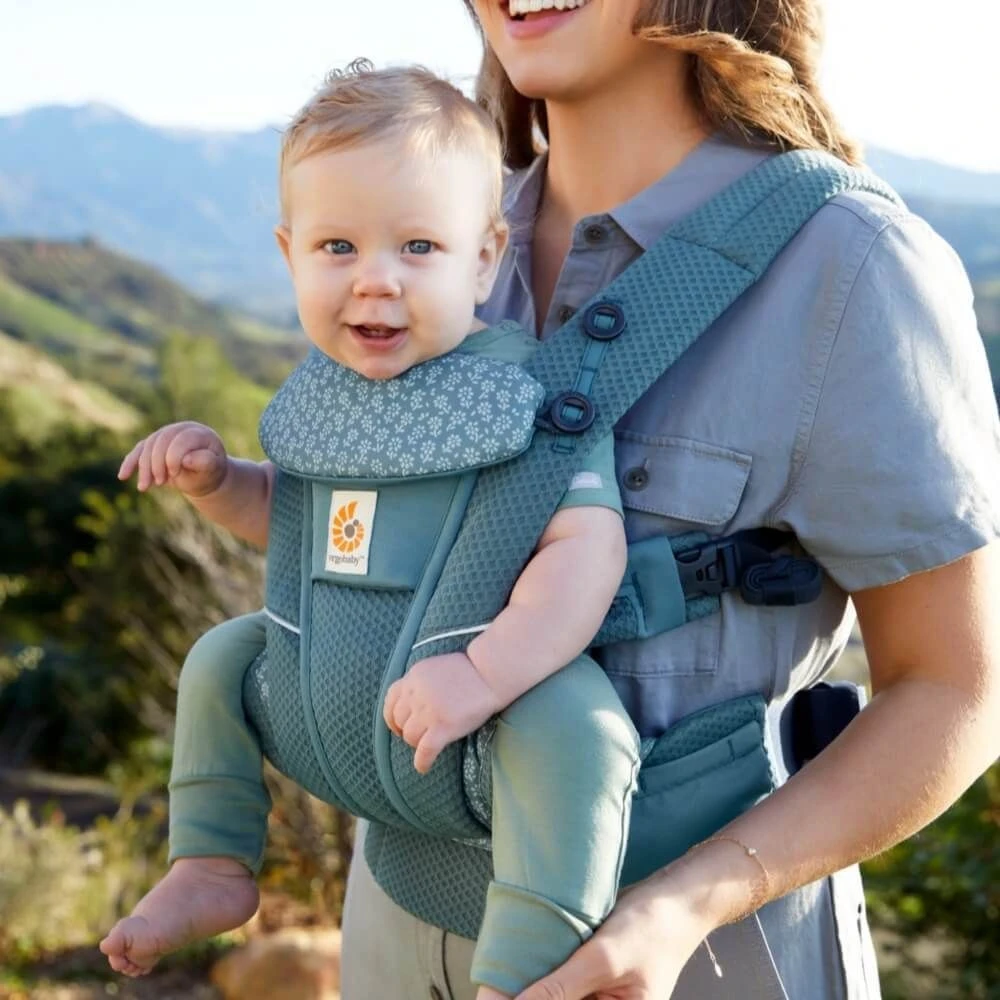 Porte bébé omni breeze marguerites bleues de la marque Ergobaby. Ce porte-bébé vous permettra de porter votre enfant face à vous, face au monde, sur votre hanche ou sur votre dos tout en conservant une position physiologique. Le tissu est fabriqué à partir d’un tissu mesh softflex aéré pour permettre une bonne ventilation de l’air. Ce porte bébé est évolutif. Les bretelles sont rembourrées et entre-croisables.
