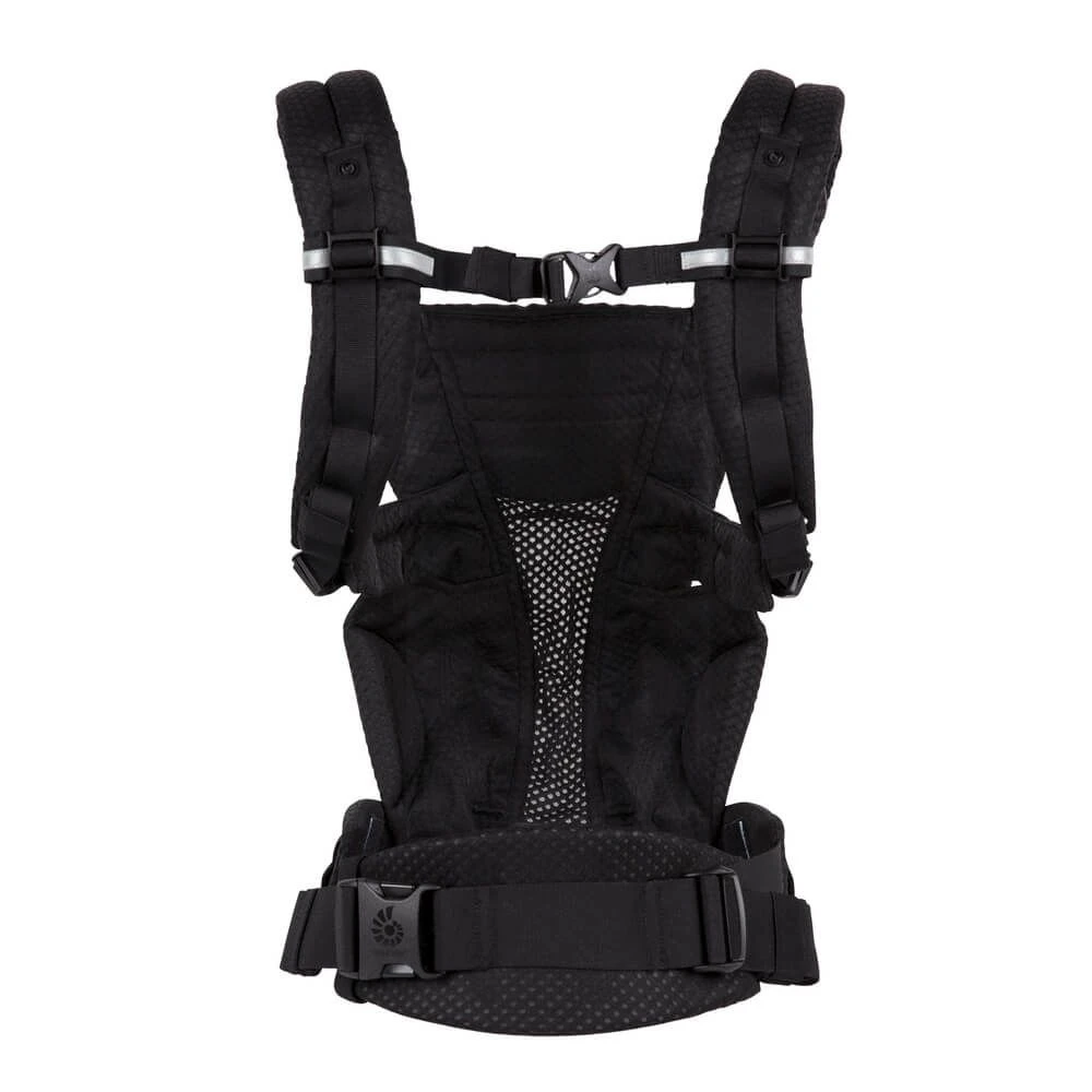 Porte bébé omni breeze noir onyx de la marque Ergobaby. Ce porte-bébé vous permettra de porter votre enfant face à vous, face au monde, sur votre hanche ou sur votre dos tout en conservant une position physiologique. Le tissu est fabriqué à partir d’un tissu mesh softflex aéré pour permettre une bonne ventilation de l’air. Ce porte bébé est évolutif. Les bretelles sont rembourrées et entre-croisables.