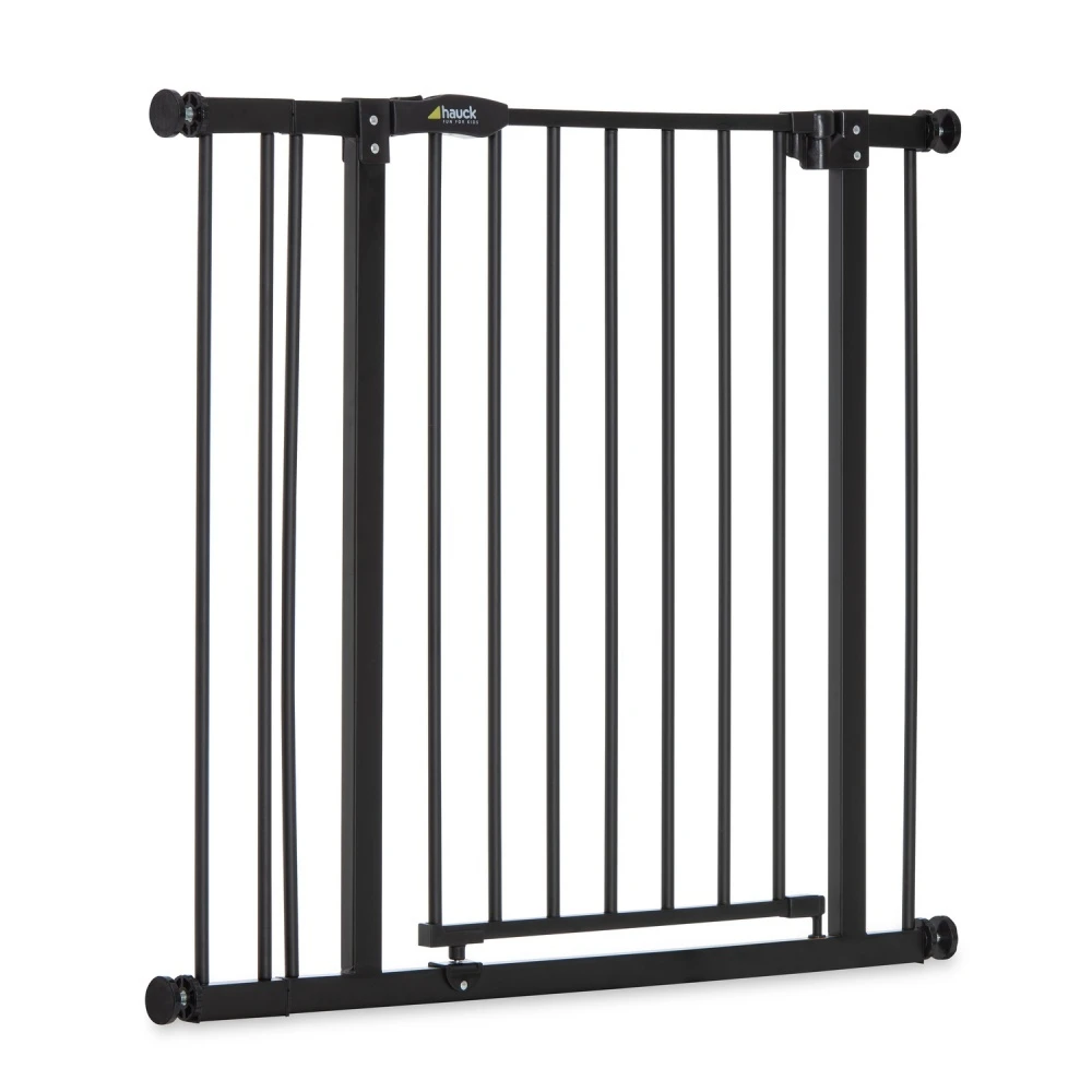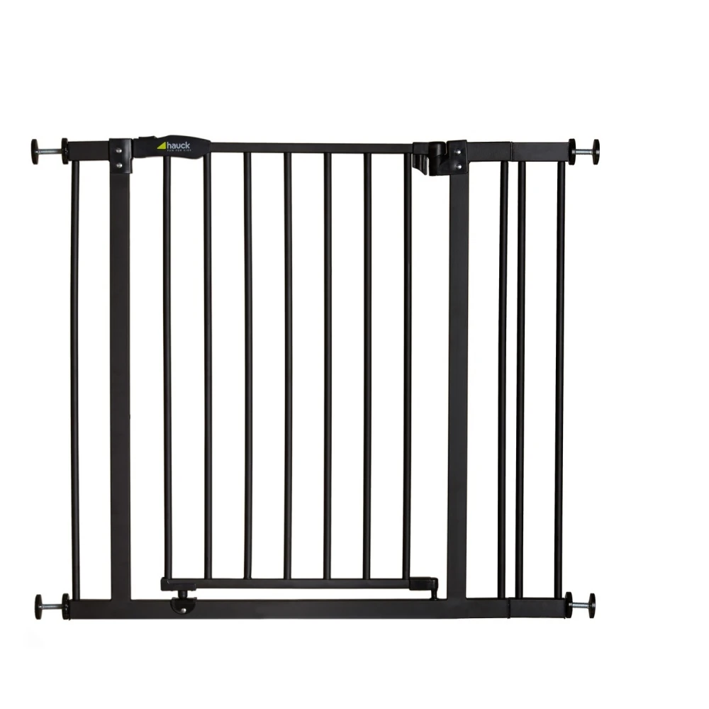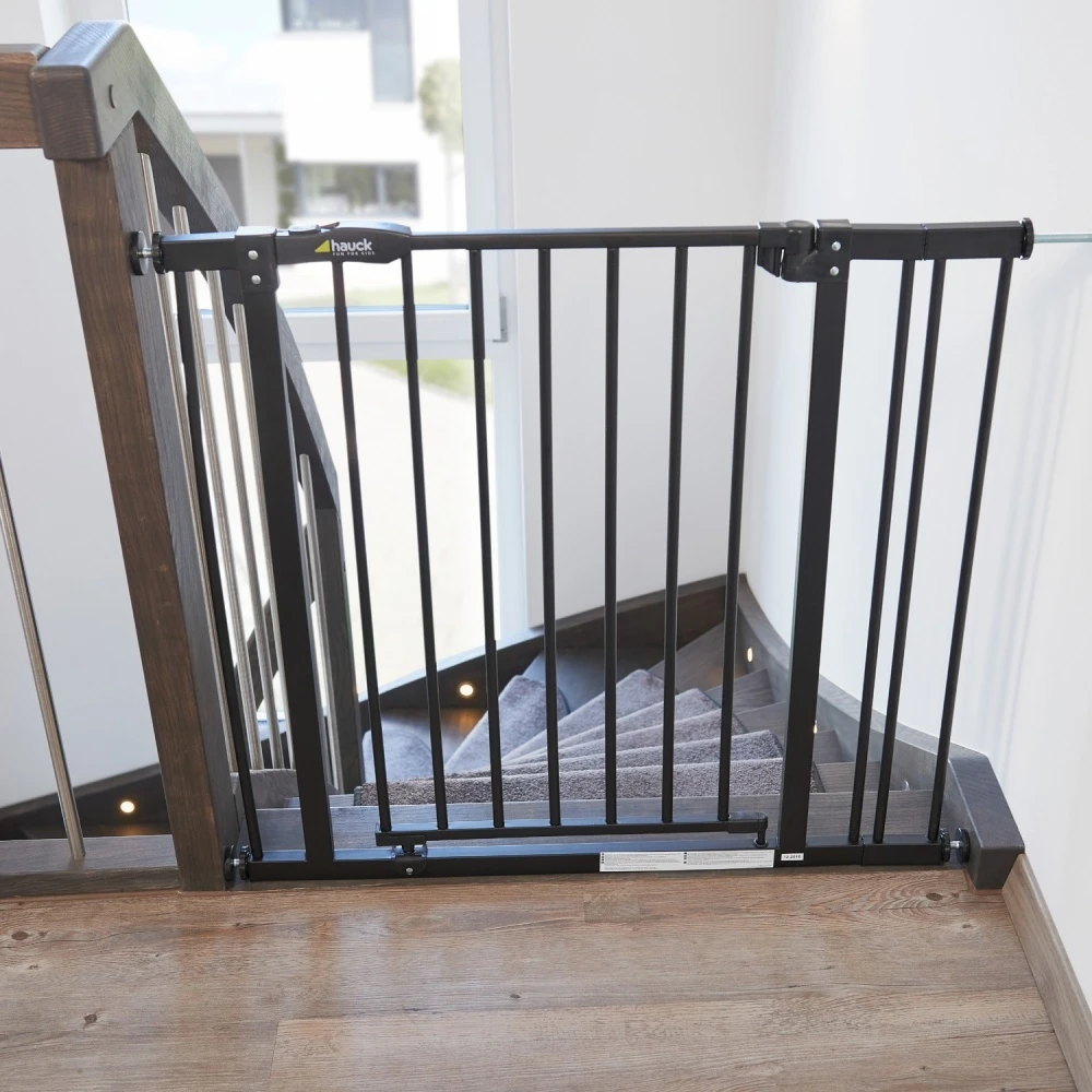 La barrière et l’extension de barrière de sécurité Close N Stop+ noire 9 cm de la marque Hauck. Idéal pour assurer la sécurité de votre enfant. Avec la barrière en métal et son extension de 9 cm, vous pourrez rallonger les barrières Hauck que vous avez chez vous. Au total, la barrière mesurera entre 96 et 101cm. Vous pouvez les fixer facilement des deux côtés de la barrière. Cette barrière doit être fixée à pression avec quatre vis entre les murs ou les portes. Et pas besoin de perçage ! Elle dispose également d’un double mécanisme de verrouillage manuel adapté aux parents très sécurisant.
