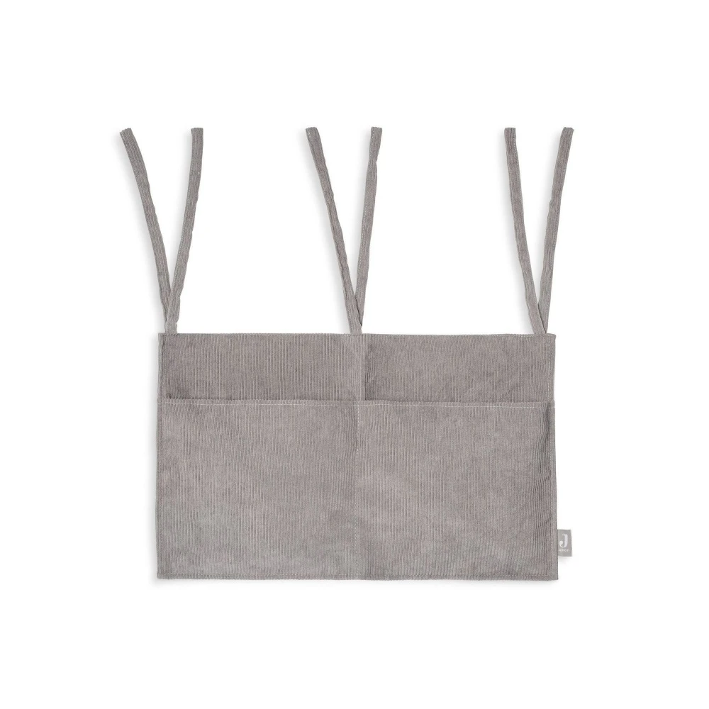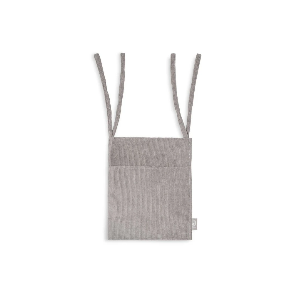 Le Sac de rangement corduroy storm grey de chez Jollein. Ce vide poche est idéal pour ranger les indispensables de votre bébé tels qu’une sucette de secours, des lingettes. Vous aurez à porter de main le nécessaire si votre enfant se réveiller en catastrophe en cherchant sa sucette. Il s’accroche facilement au lit à barreaux ou à la table à langer.