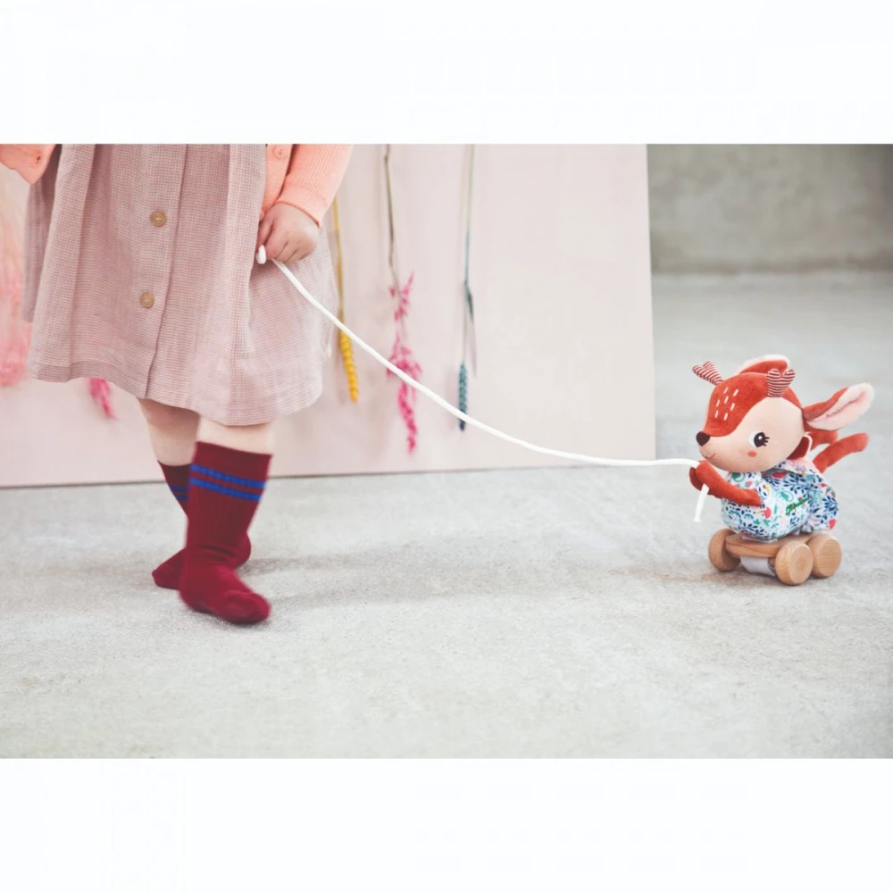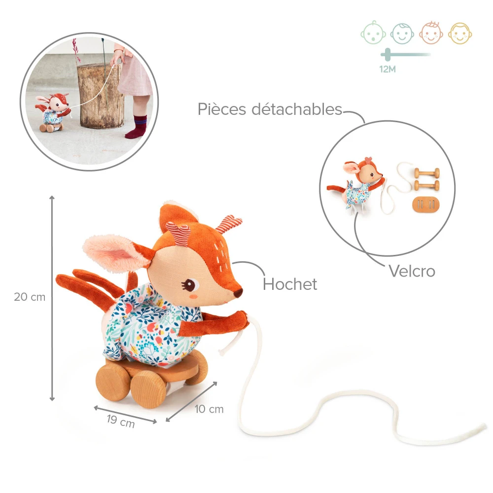 Jouet à tirer stella de la marque Lilliputiens. Votre bébé va adorer se déplacer avec ce jouet dans toute la maison. Il le promènera comme si c’était son animal de compagnie. La cordelette est assez longue pour une utilisation idéale. Les roues en bois sont amovibles pour que vous puissiez laver la peluche à la machine à 30°.