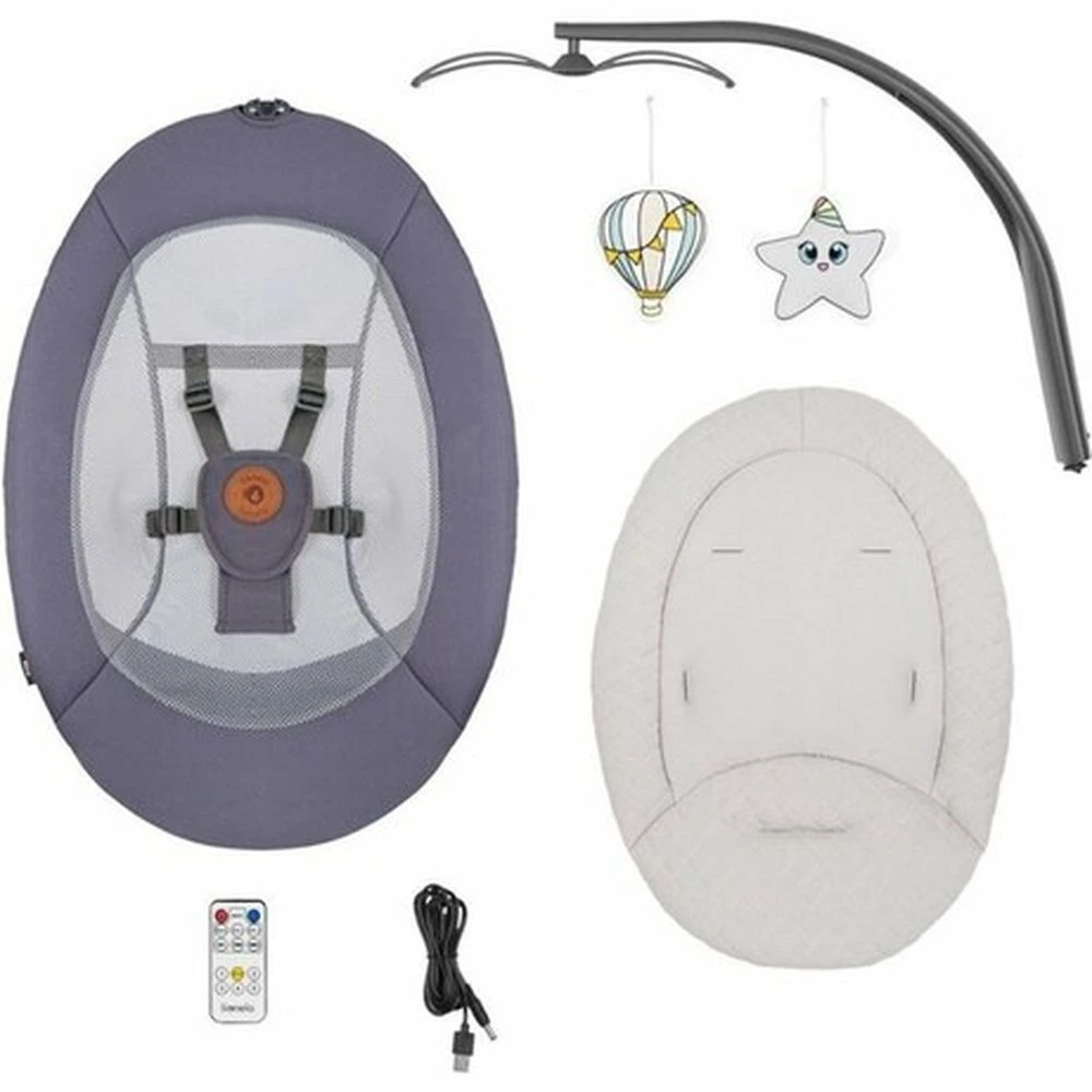 - La balancelle est fournie avec deux jouets d’éveil, une télécommande et un câble USB (1,2m)