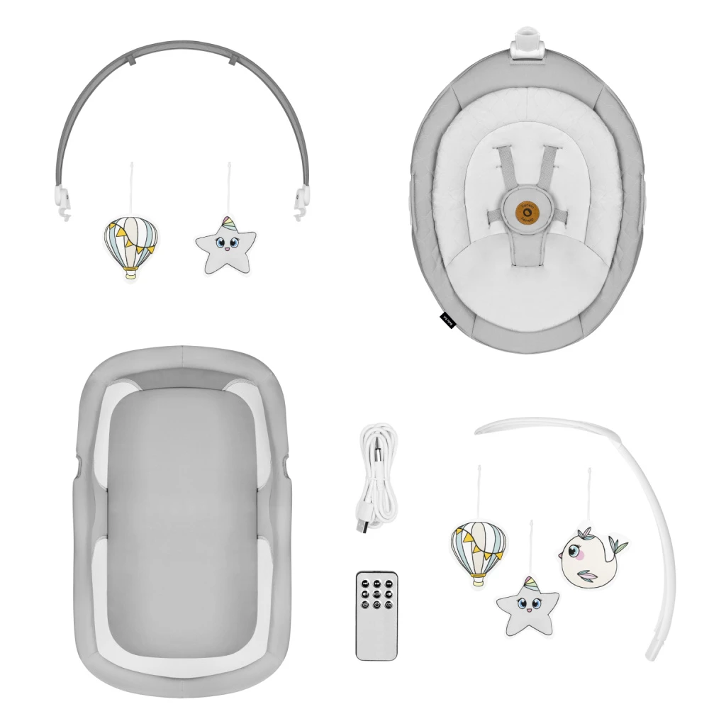 Découvrez la balancelle Bella Set 2en1 de la marque Lionelo. Semblable à la balancelle Bella, vous aurez ici la possibilité d’interchanger entre le transat et le cododo.