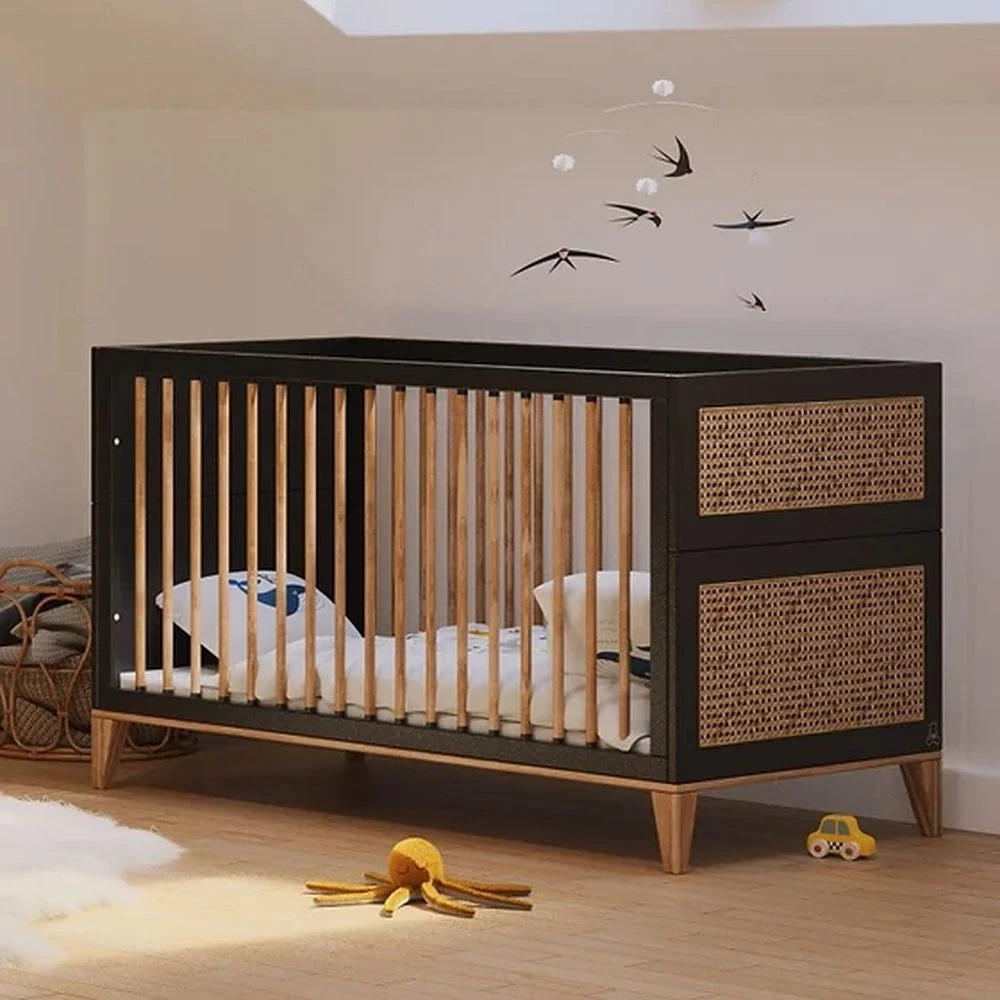 Lit bébé évolutif nami canne de rotin 70 x 140 onyx