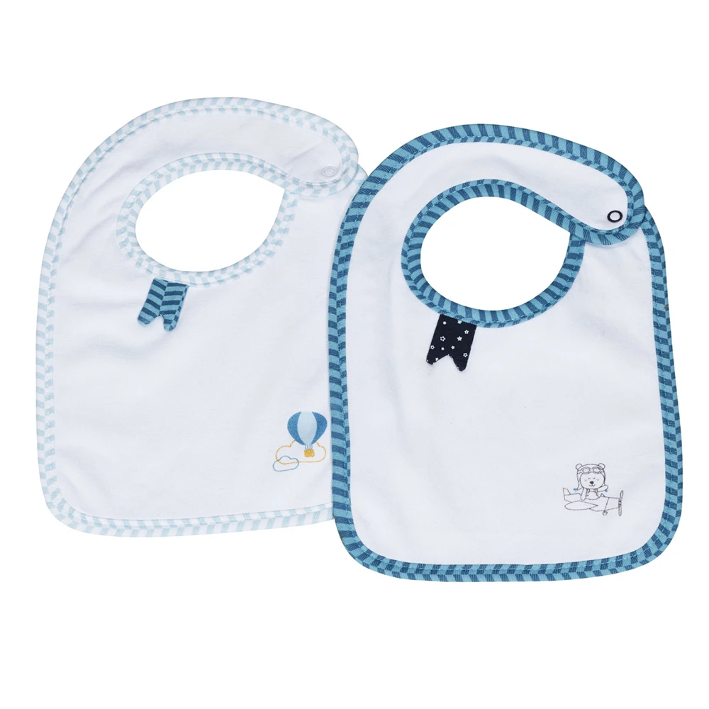 - Bavoirs à deux faces: une face en jersey de coton pour la douceur et une face en éponge pour l’absorption.