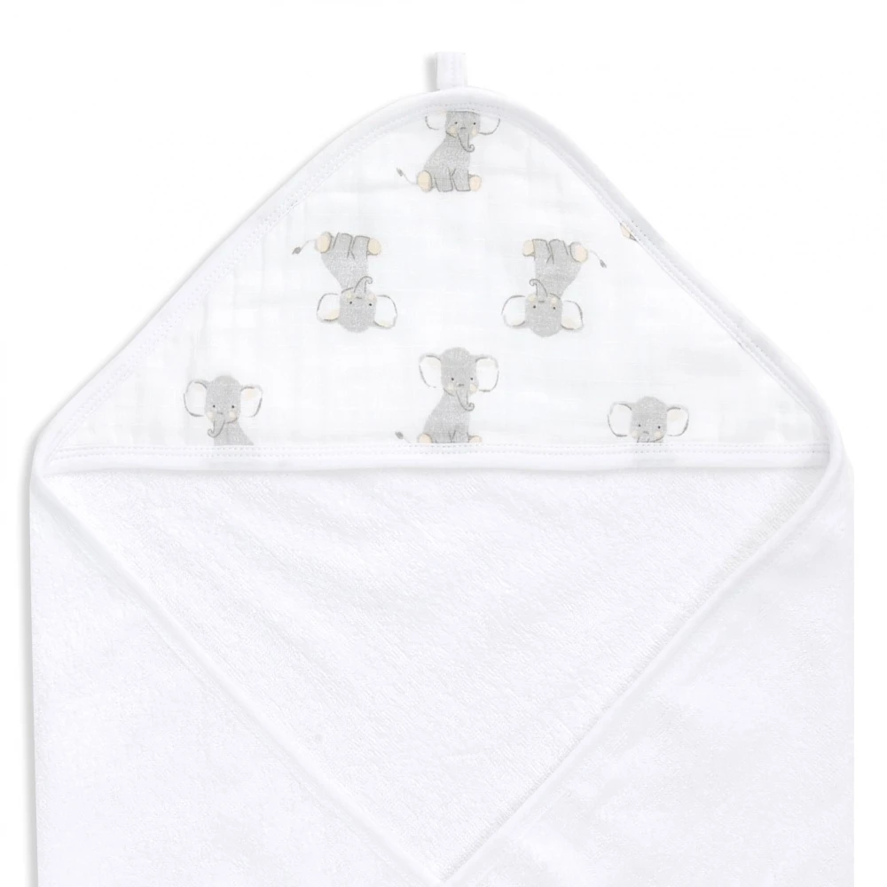 - Absorbante, elle permet de maintenir la tête de bébé au chaud et au sec grâce à la capuche