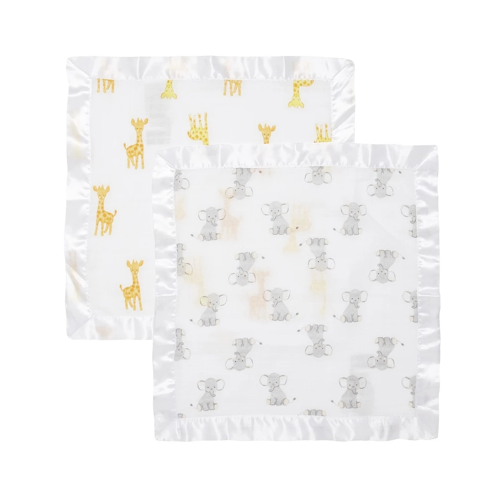 Lot de 2 couvertures-doudous en mousseline de coton safari babes