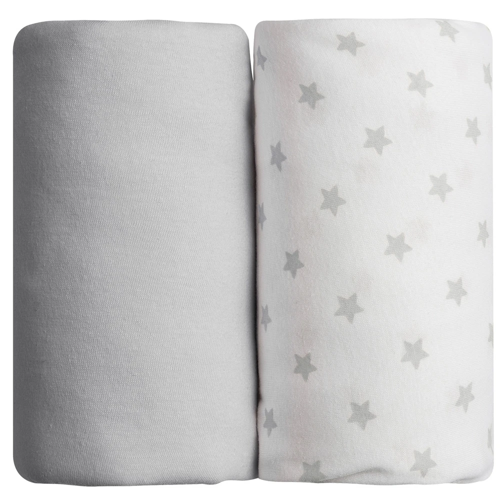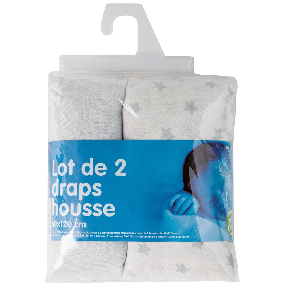 Lot de 2 draps housse 70 x 140 cm étoiles grises