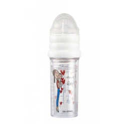 Dans ce lot, le flacon de 360 ml représentant la maman avec son bébé est déjà fourni avec son anneau de réduction et une tétine de taille M mieux adaptée pour les enfants de + de 6 mois, le flacon de 210 ml My love est aussi fourni avec une tétine de taille M et le flacon de 210 ml avec des coeurs est fourni avec une tétine S adaptée dès la naissance. De plus un pochon en coton bio très doux est vendu avec le set de biberons .