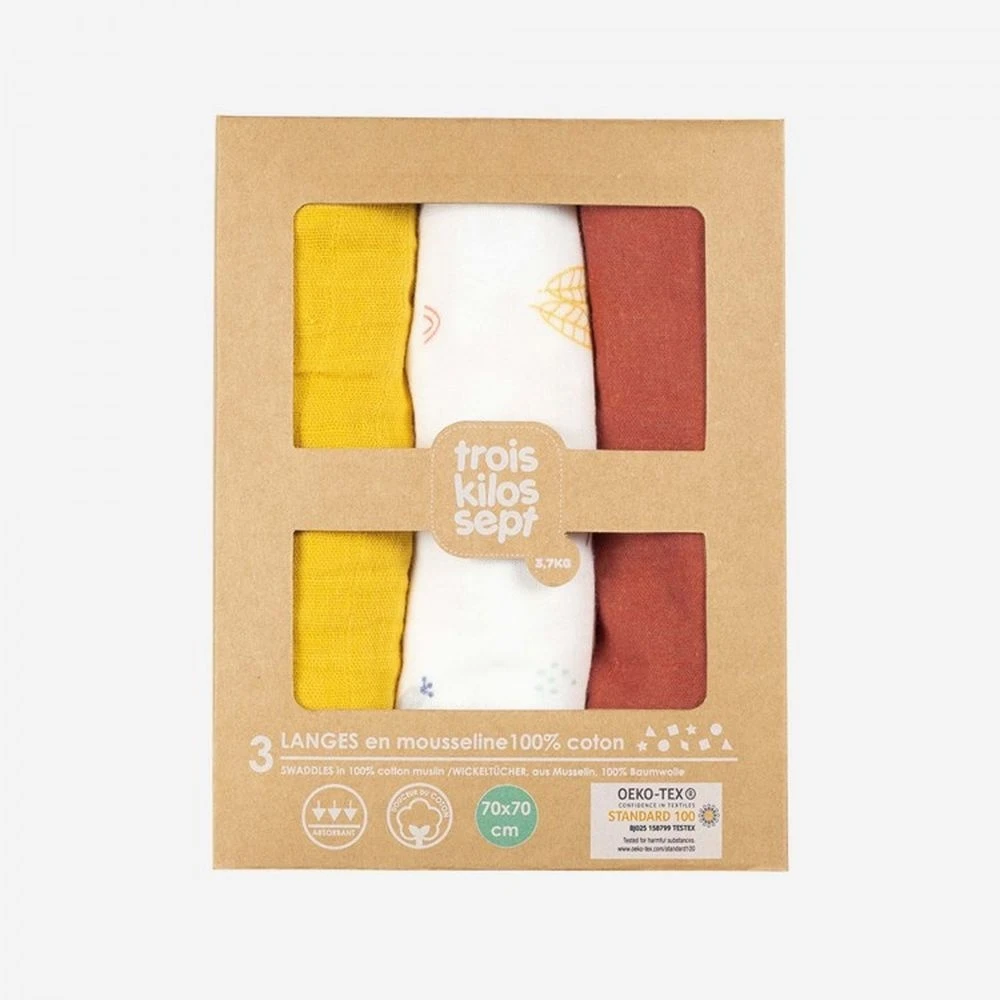 Le Lot de 3 langes cache cache en forêt de chez Trois Kilos Sept. Ils ont été spécialement conçu pour apporter un maximum de confort à votre bébé. Facile à entretenir, ces langes pour bébé seront de plus en plus doux après chaque lavage. Votre enfant ne pourra plus se passer de ses langes préférés. Multifonctions, ces langes Trois Kilos Sept pourront vous servir de bavoir d’épaule, de couverture d’emmaillotage mais aussi de doudou ou de protection de matelas à langer. Ils seront là pour vous accompagner durant les premières années de votre enfant. Fabriqués en coton Oeko-Tex, les langes pour bébé seront doux et respirant.