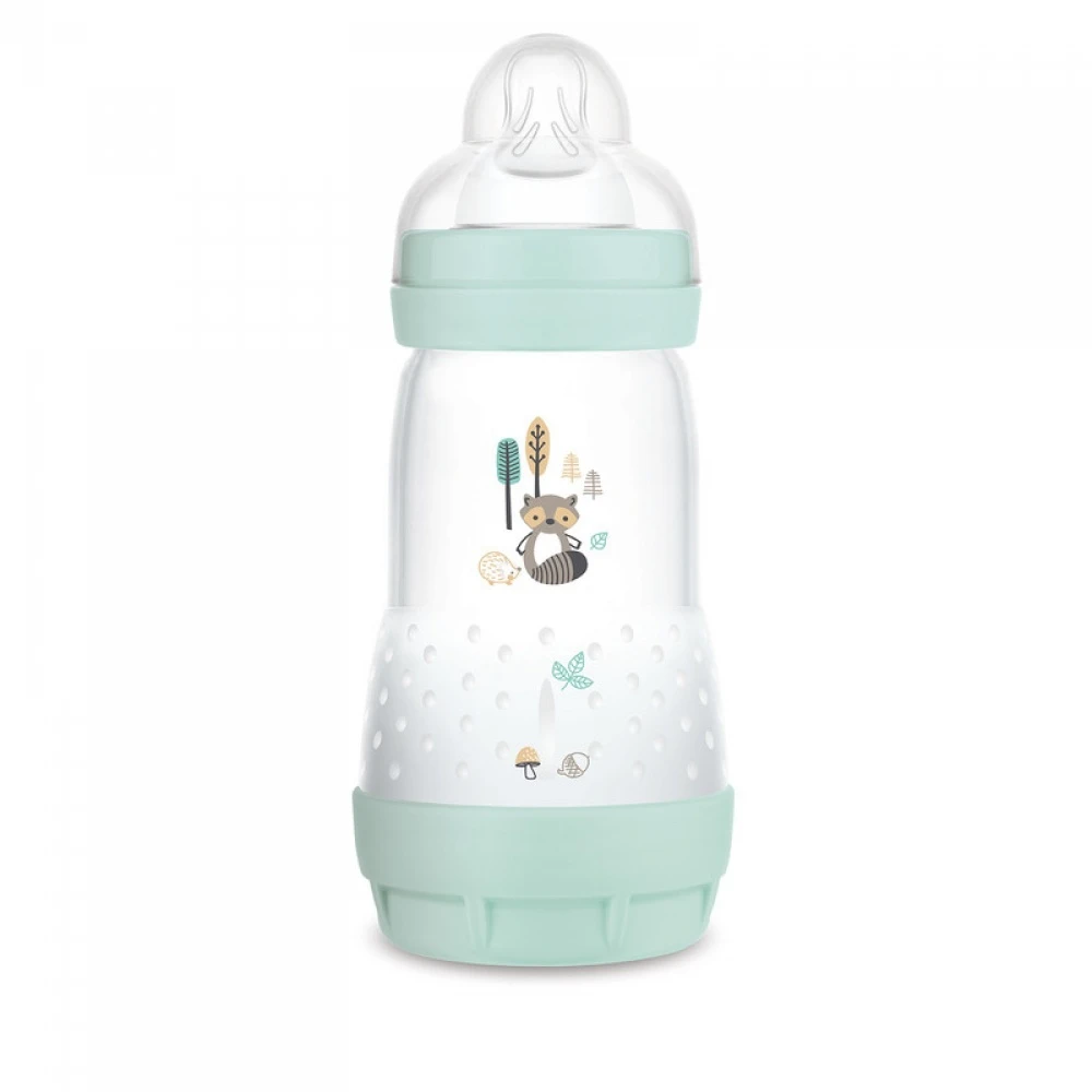 Optez pour le Biberon anti-colique 260ml easy start aqua de chez Mam. Utilisable de 2 à 12 mois. Ce biberon Mam a un col large pour un remplissage et un nettoyage facile. La base aérée anti-colique régule l’entrée d’air et respecte le rythme de tétée de bébé.