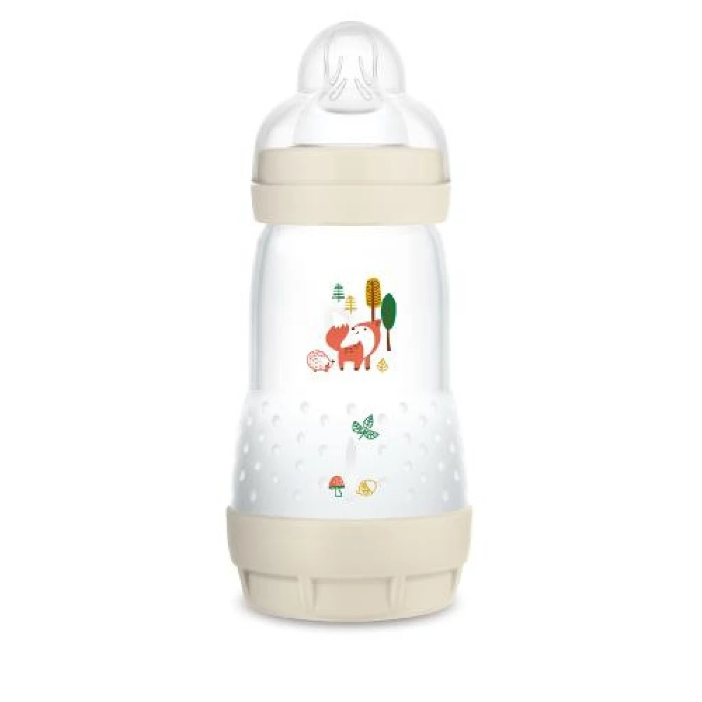 Optez pour le Biberon easy start anti-colique 260 ml lin de chez Mam. Utilisable de 2 à 12 mois. Ce biberon Mam a un col large pour un remplissage et un nettoyage facile. La base aérée anti-colique régule l’entrée d’air et respecte le rythme de tétée de bébé.
