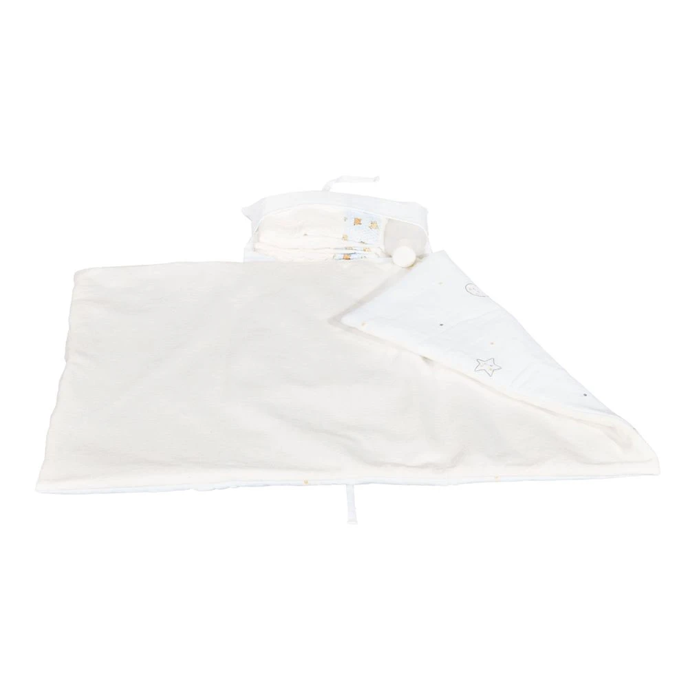 Conçu pour le bien être de bébé, le Matelas à langer nomade babyfan est en mousseline de coton bio et légèrement rembourré pour que bébé soit changé dans toutes les situations dans le plus grand confort.
