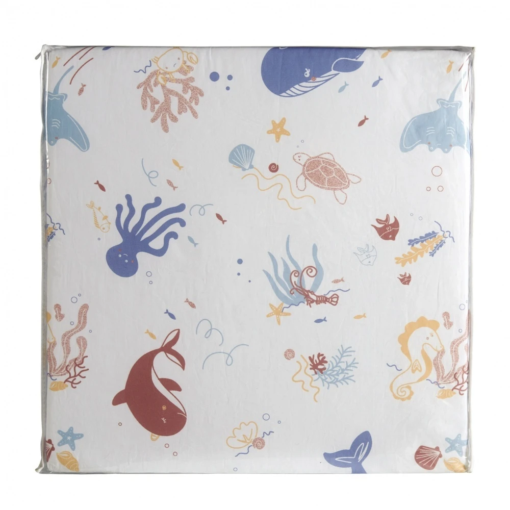 Le Maxi tapis malin trésors de l’océan de chez Tinéo. Ce tapis offre une grande surface de jeux. Le tapis malin est évolutif. Il servira de tapis de jeux à votre bébé. Plié en trois votre bébé pour l’utiliser comme couchage. Parfait pour les voyages. Vous pourrez le transformer le pouf également. Votre enfant pourra jouer dans une cabane et s’inventer un monde. La transformation en tunnel aidera au développement de la motricité.