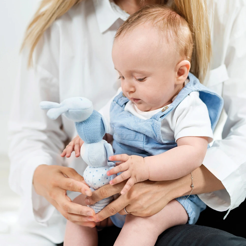 Peluche chenille aux différentes matières velours et tricot très douce et sons pour stimuler bébé