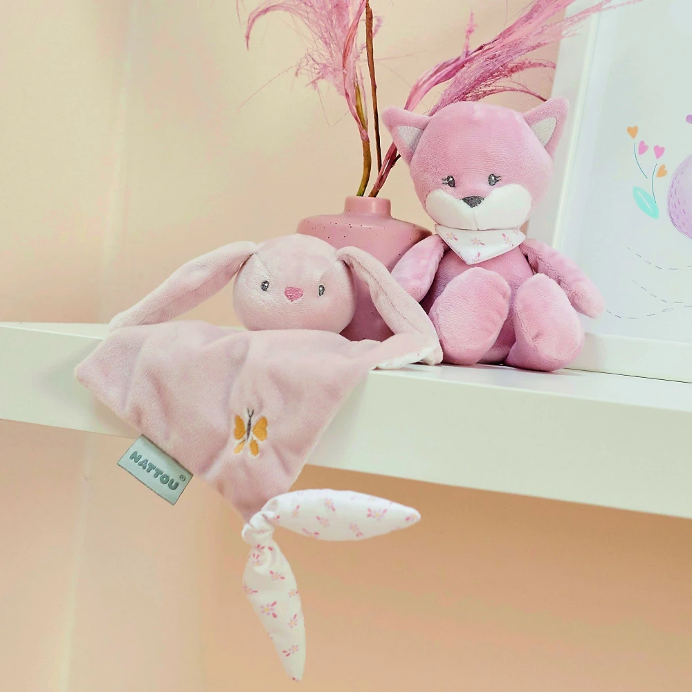 Le Mini doudou plat pomme le lapin de chez Nattou. Grâce à sa petite taille, votre bébé pourra l’emporter partout avec lui. Il est équipé d’un petit nœud pour vous permettre d’accrocher la sucette de votre bébé afin d’éviter de la perdre. Vous allez l’adorer avec sa belle couleur.