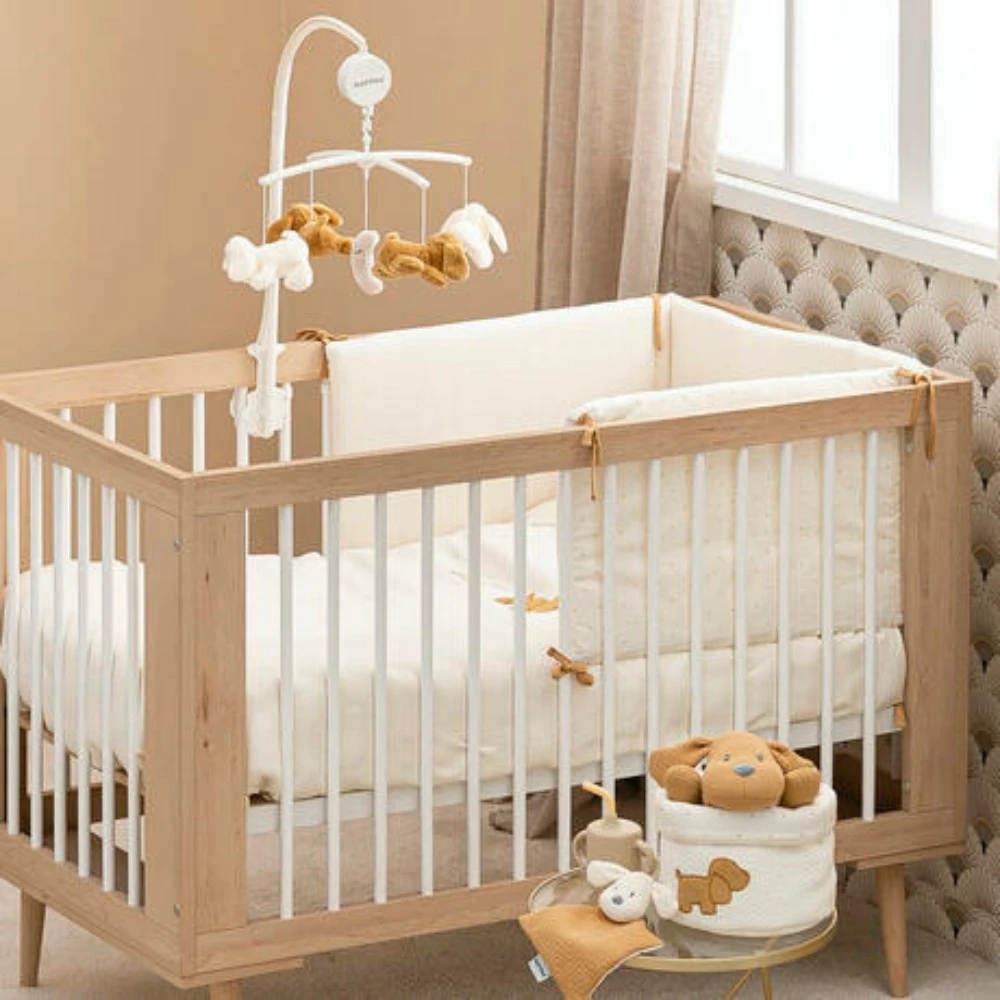 Le mobile est l’accessoire idéal à fixer au lit. Les petits personnages qui tournent au rythme de la chanson “La-Le-Lu” berceront bébé et l’endormiront. Les peluches peuvent être lavées en machine à 30 ° C.