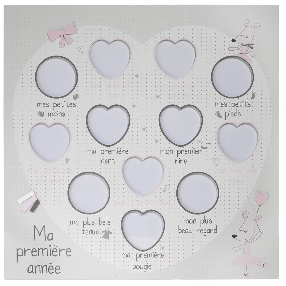 Grand pêle-mêle à 12 vues assorti au thème Lilibelle. Produit original à offrir en cadeau de naissance, il permettra aux parents de garder un souvenir des petits et grands moments de la première année de leur enfant.