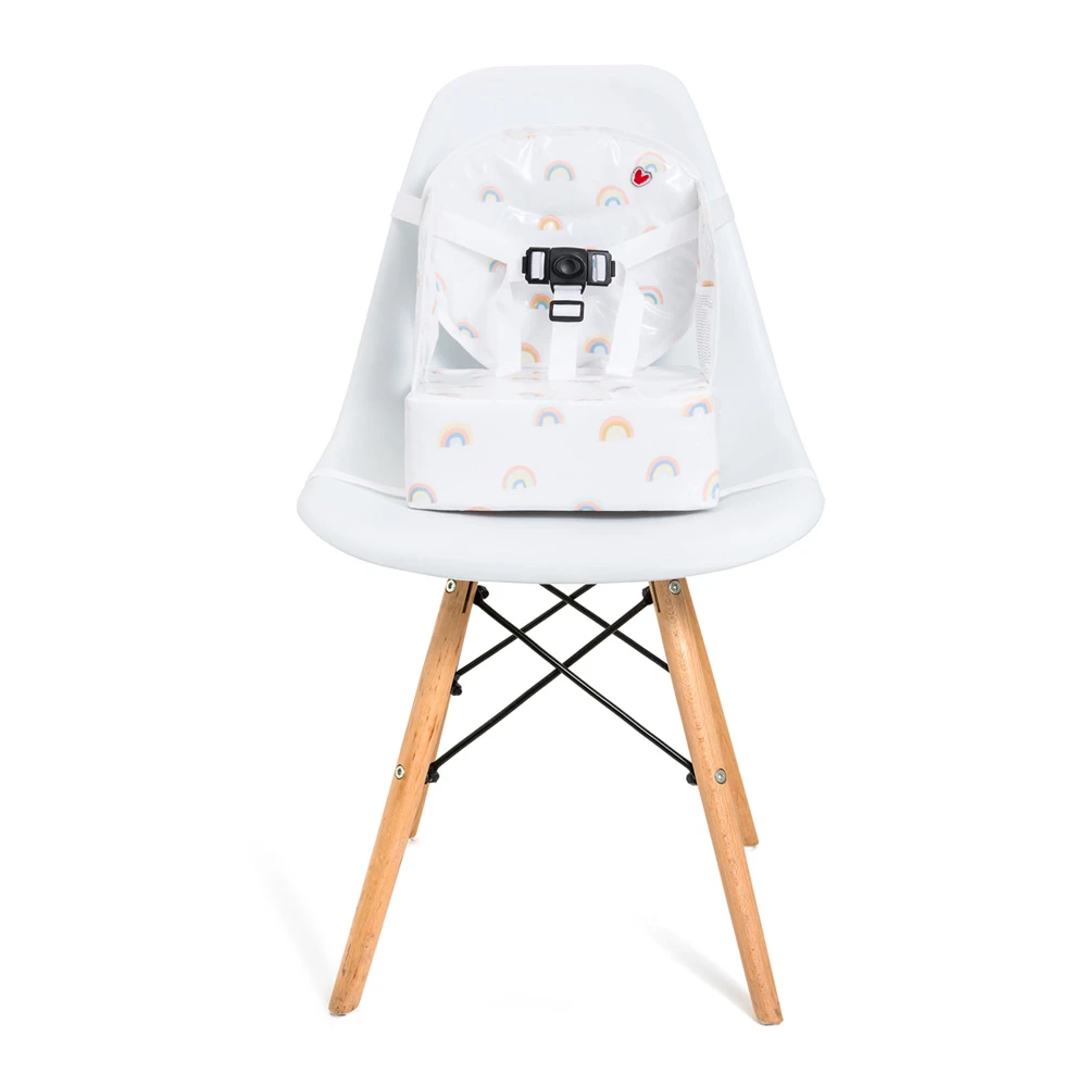 Ce rehausseur compact et nomade permet d’assoire bébé confortablement sur toute chaise.
