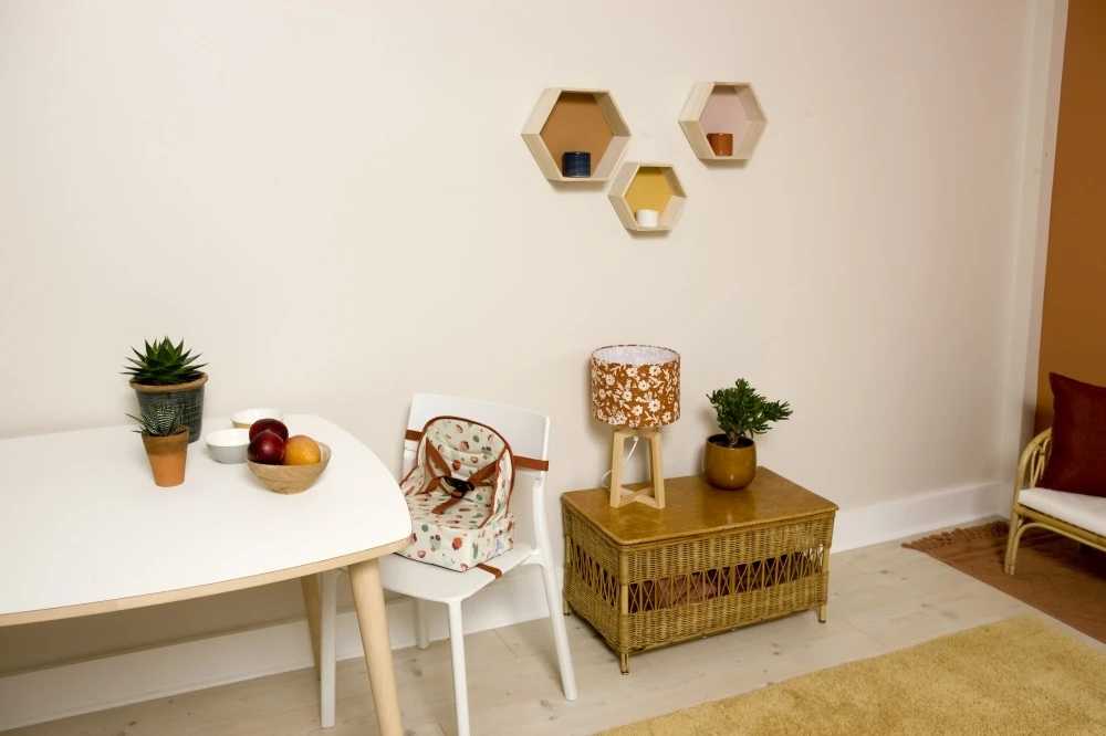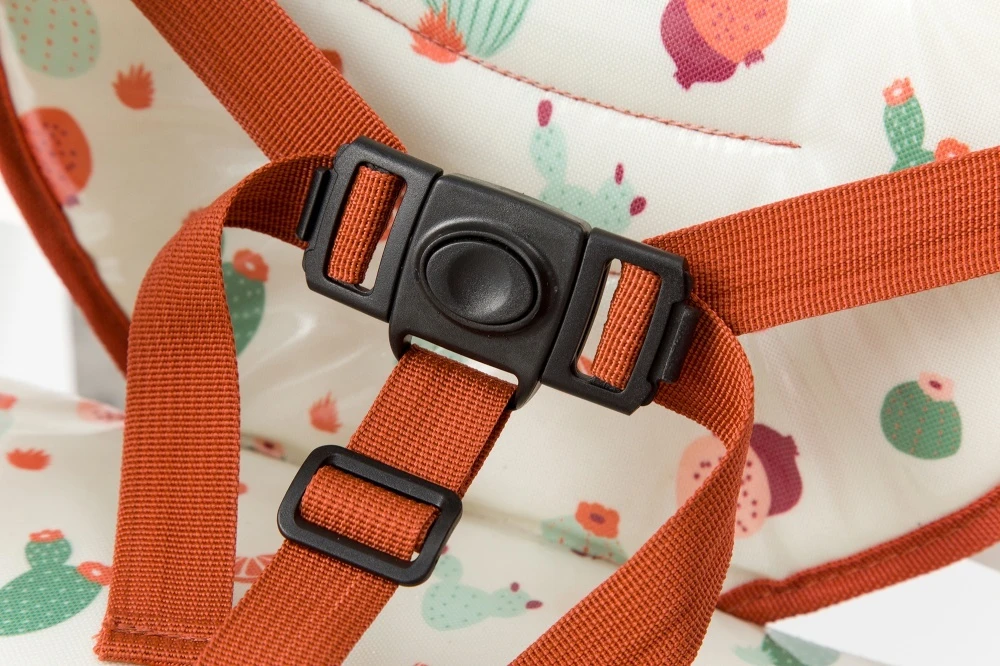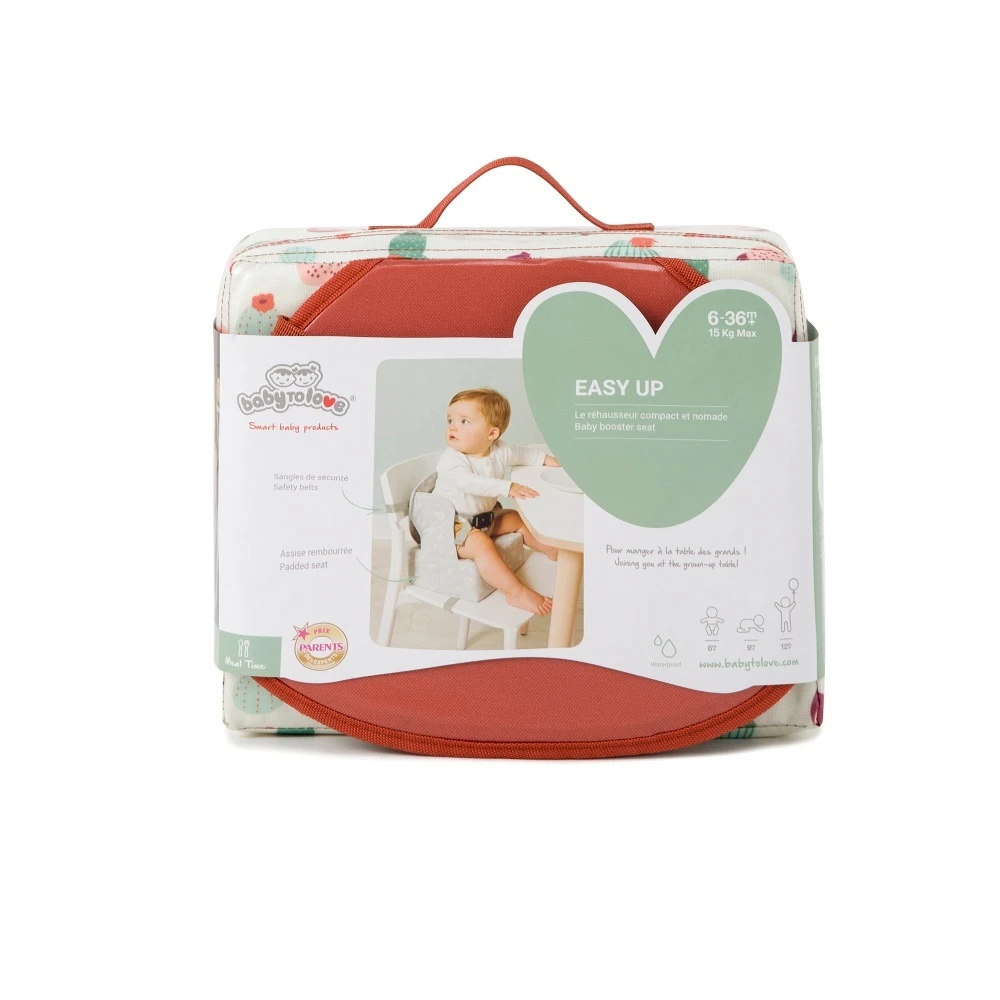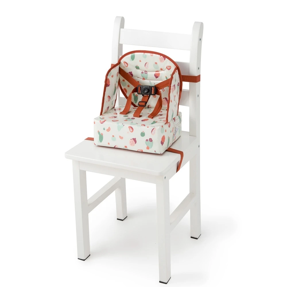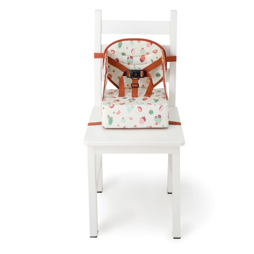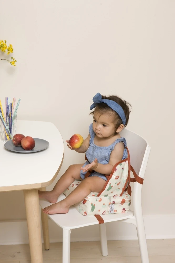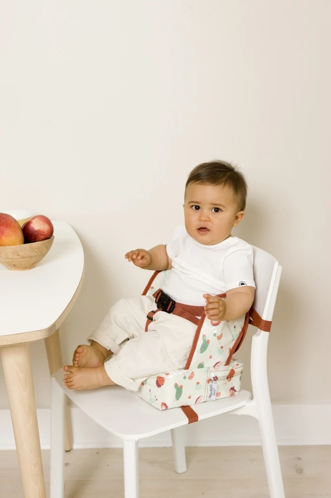 Ce rehausseur compact et nomade permet d’assoire bébé confortablement sur toute chaise.