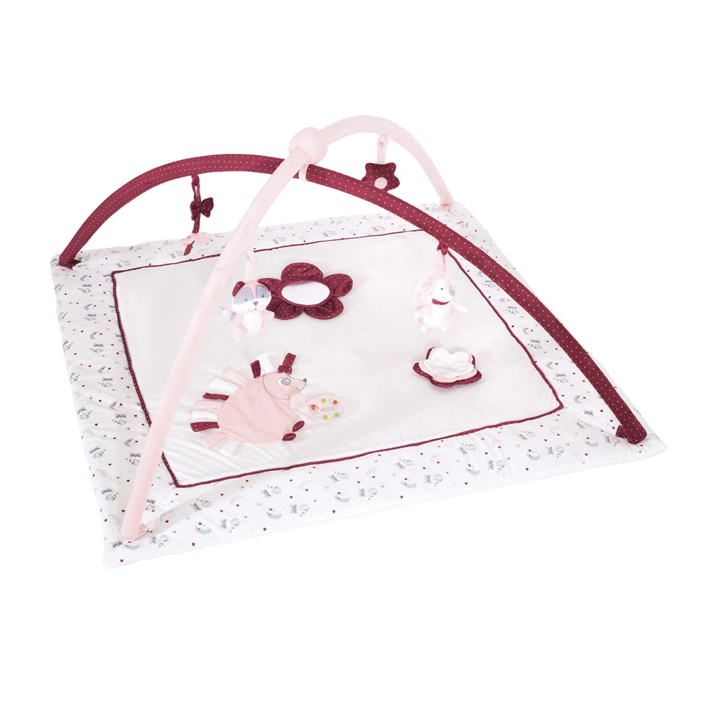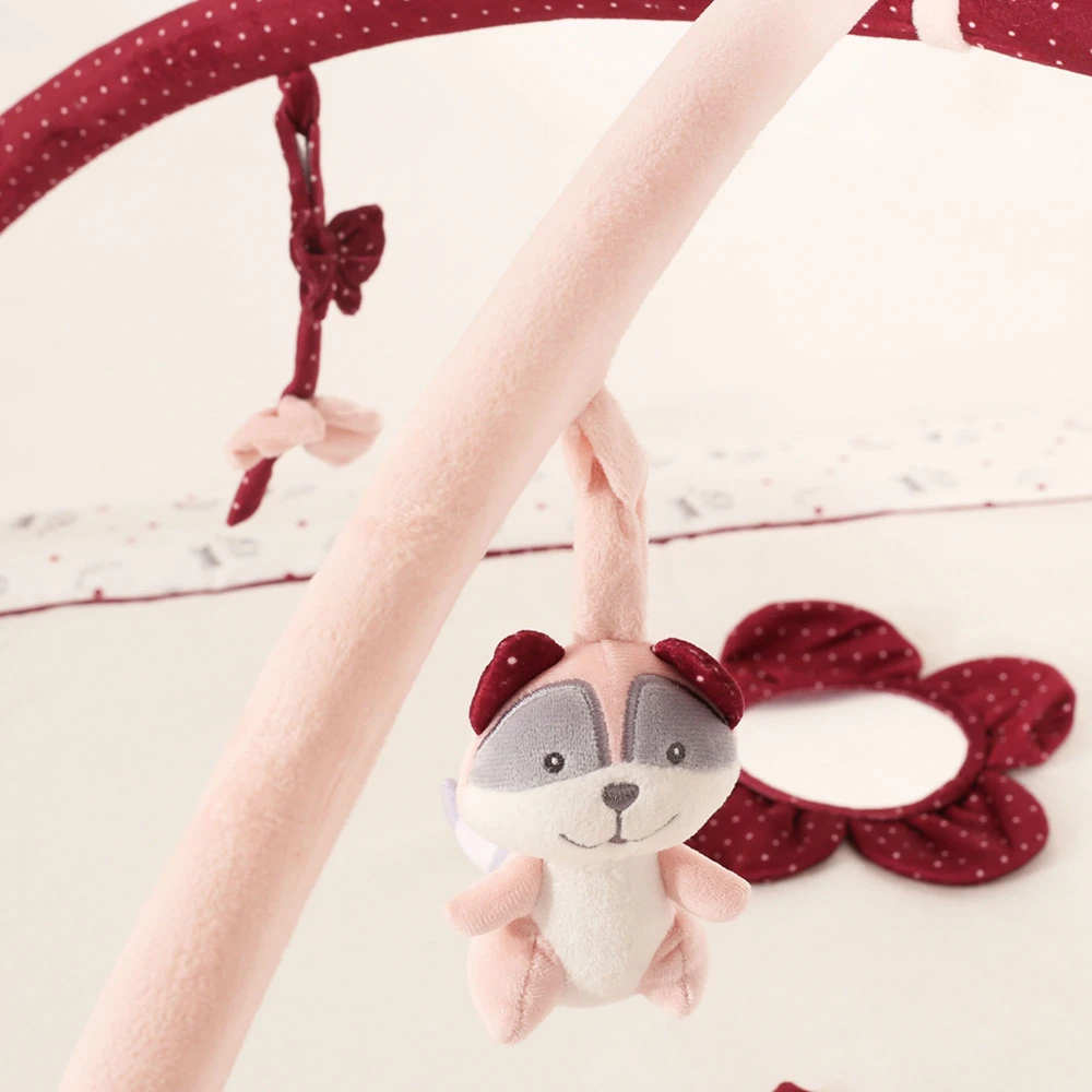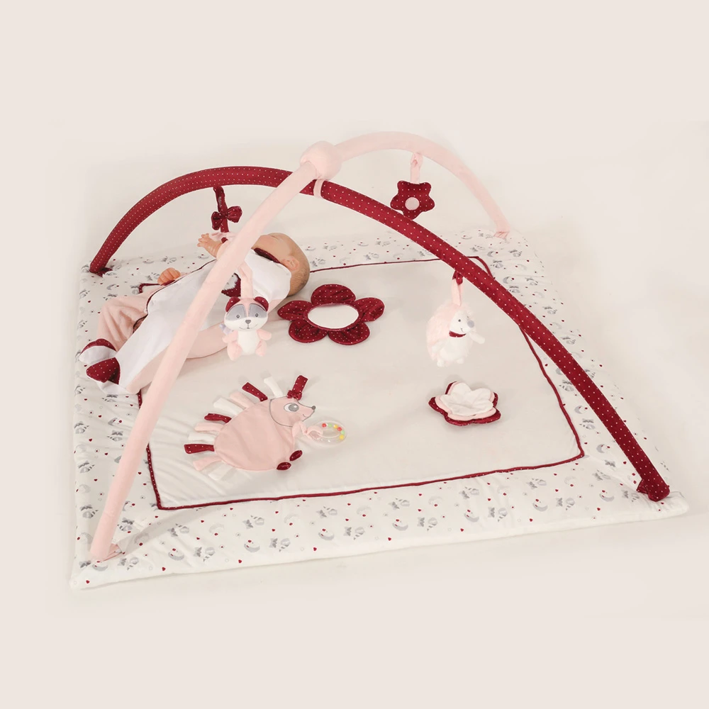 Composition : Tapis d’éveil avec peluches suspendues en velours 100% polyester.