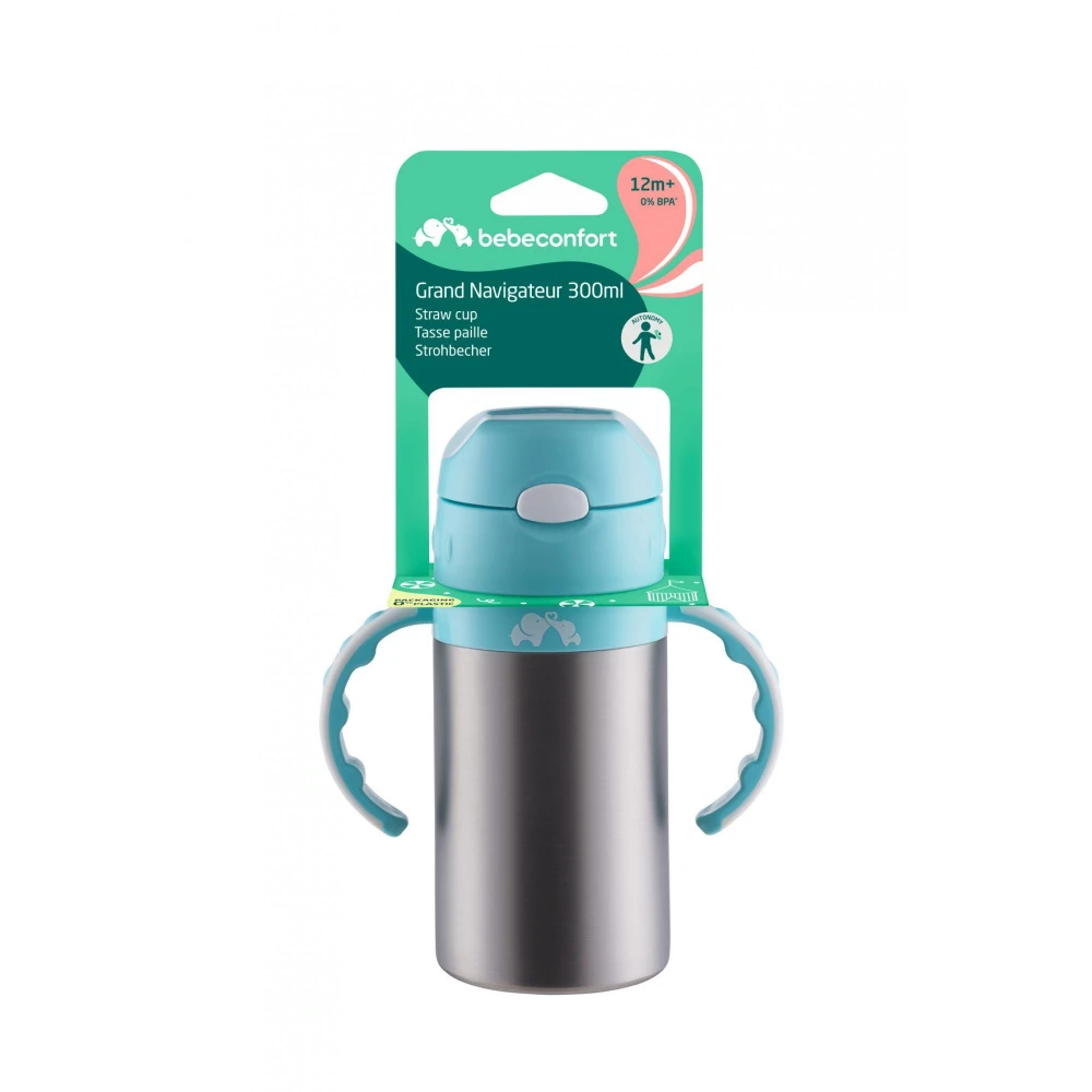 Craquez pour cette Tasse isotherme avec paille Grand Navigateur de 300 ml de la marque Bebeconfort. Grâce à la paille intégrée dont dispose cette tasse votre enfant apprendra facilement à boire. Dotée d’un capuchon et de poignées de préhension, elle sera facile à ouvrir mais également très simple à tenir pour les petites mains de votre bébé. Elle est parfaite pour conserver les boissons fraîches plus longtemps et très pratique pour que bébé s’hydrate quotidiennement.