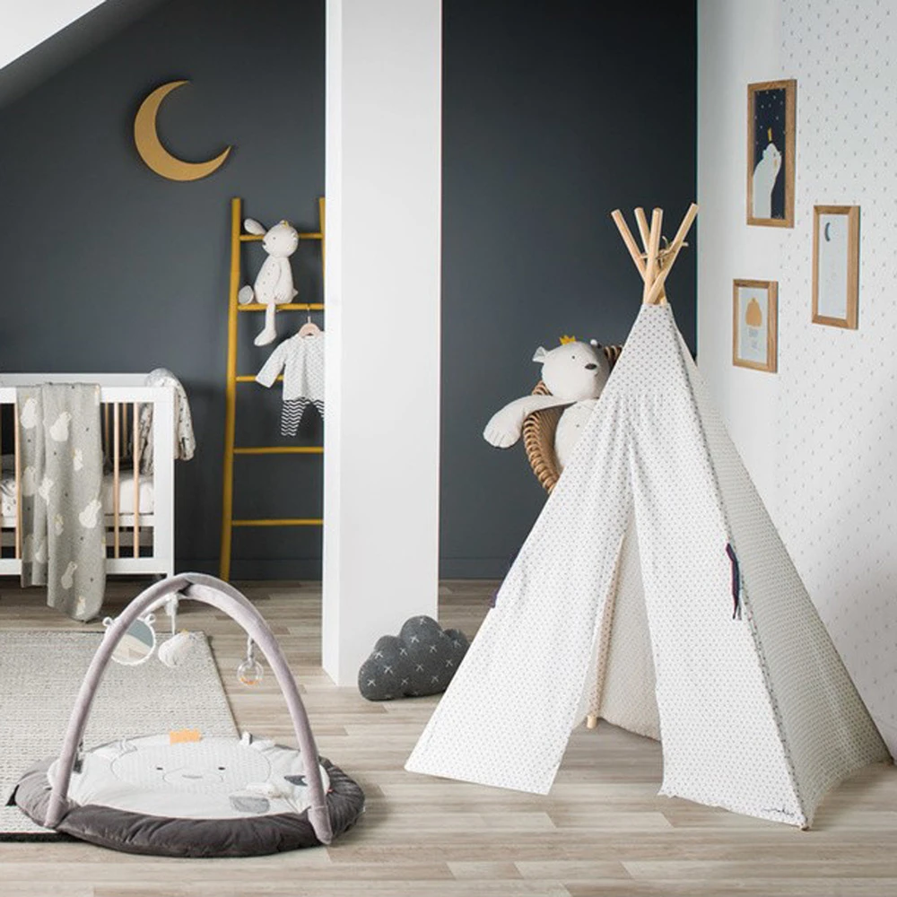 Ce tipi à quatre pôles est idéal pour compléter la décoration de la chambre, tout en développent l’imaginaire de l’enfant.