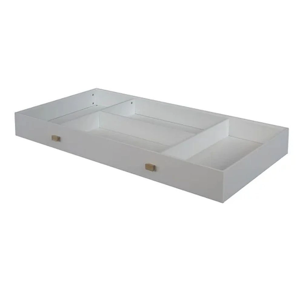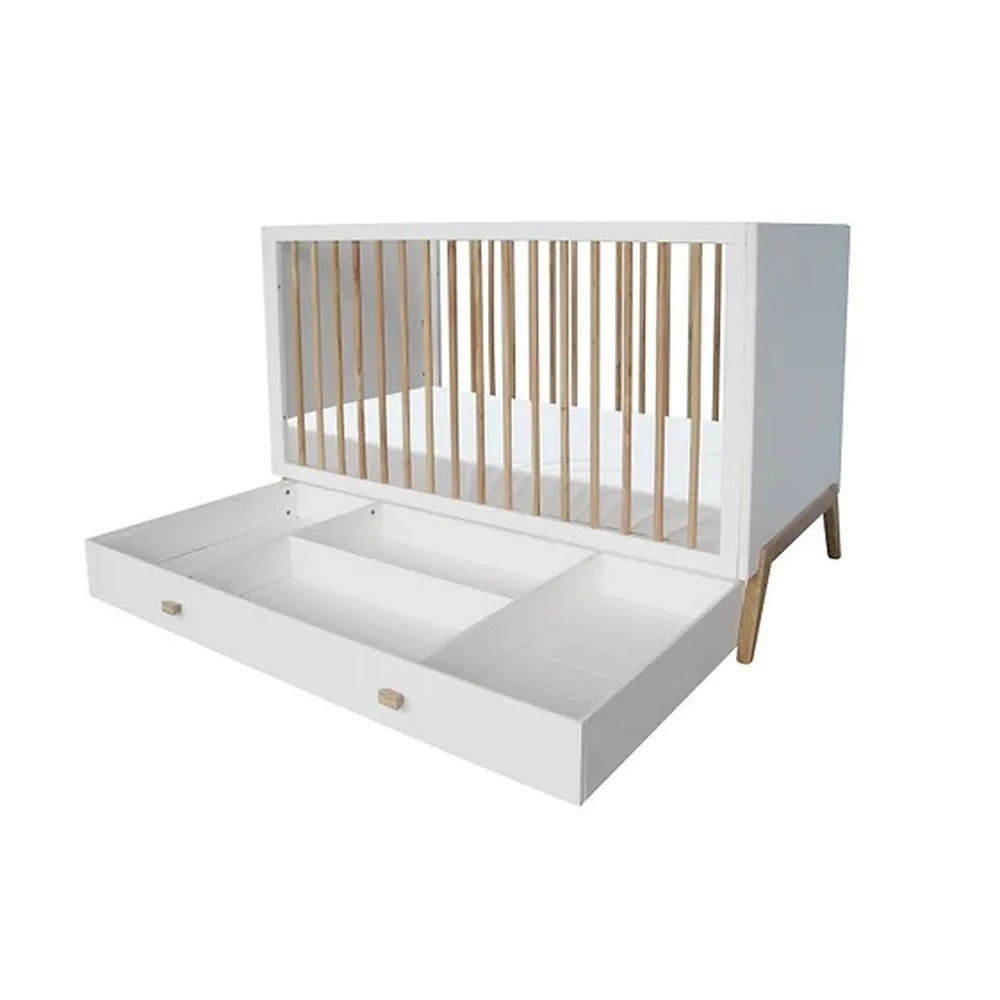 Le tiroir de lit Marélia 70×140 cm Neige de la marque Théo. Convient aux lits de la collection Marélie et Marélia 70x140cm. Idéal pour ranger le surplus d’affaires de votre enfant de manière discrète. Cela vous apportera u gain d’espace non négligeable. Grâce à ses roulettes, vous le glisserez sans effort sous le lit. Ce tiroir vous permettra également de transformer votre lit en petit bureau lorsque votre bébé aura grandit. Il vous suffira de retirer le sommier et de relever le tiroir au niveau medium et le tour est joué !