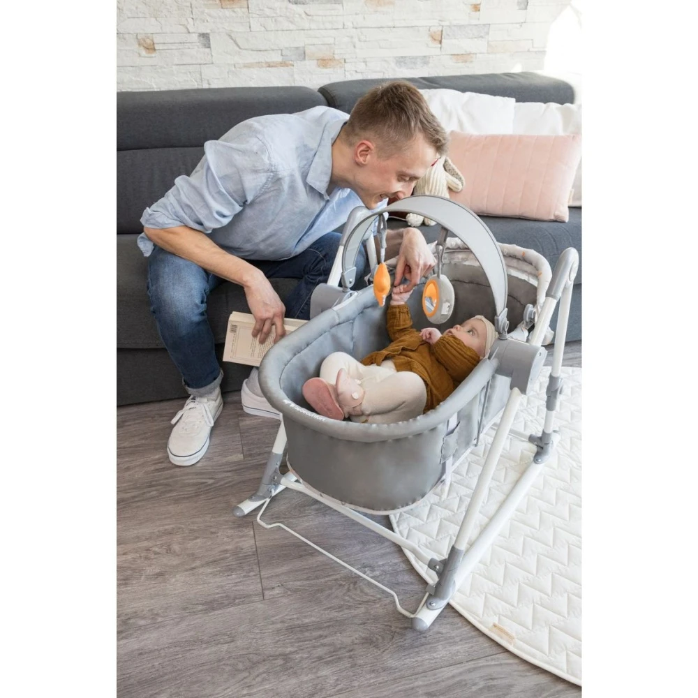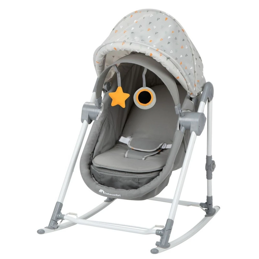 Optez pour le Transat 3 en 1 calys warm gray de chez Bebeconfort. Ce transat évoluera en fonction de vos besoins et de ceux de bébé. Il pourra servir de transat mais aussi de balancelle et de berceau. De la naissance jusqu’aux 9 mois de votre petit bout, utilisez ce transat en position fixe ou en balancelle pour lui apporter du mouvement. Réglable en hauteur sur 4 positions et inclinable sur 3 positions dont une totalement allongée afin de remplir sa fonction de transat pour bébé, il saura se faire discret une fois plié et vous pourrez retirer sa capote et son arche de jeu composée de deux jouets à tout moment. Vous pourrez également le nettoyer régulièrement grâce à son matelas et sa housse amovibles !